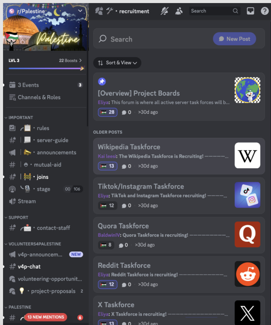 On Reddit, both the r/Palestine and X ban link campaigns were able to slot neatly into the site’s culture, which affords them what you might call plausible organicity: given the cultural dynamics on Reddit, these left-coded campaigns could possibly be organic.